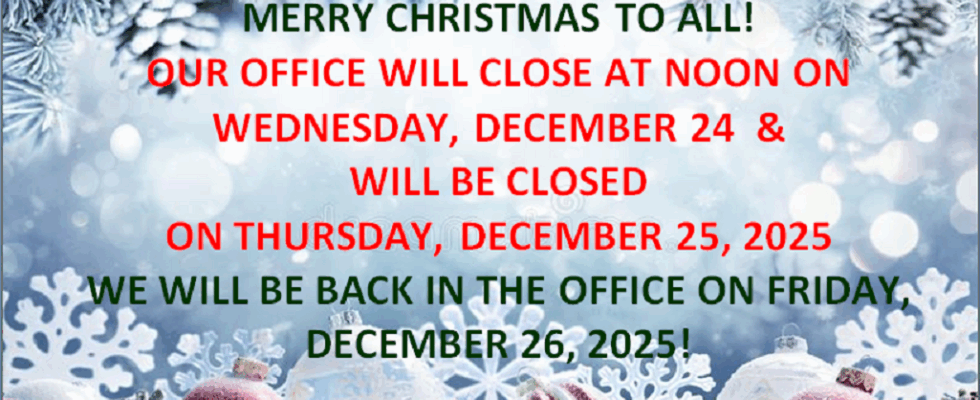 Our Office hours are: Monday through Friday from 8:00 A.M. till 5:00 P.M.